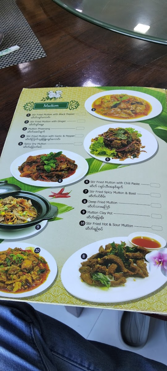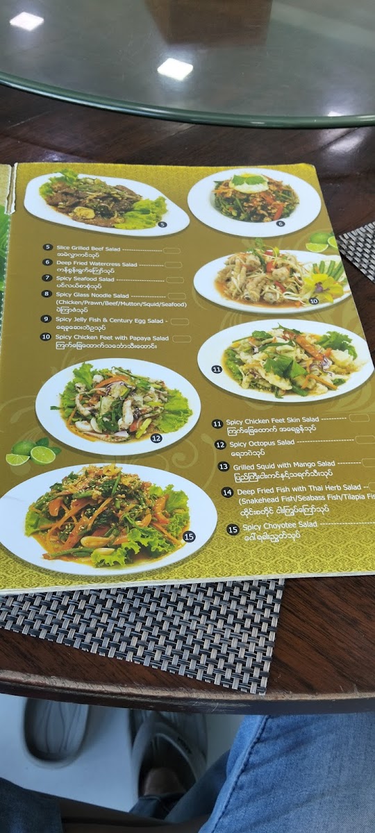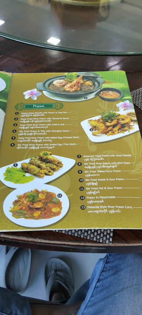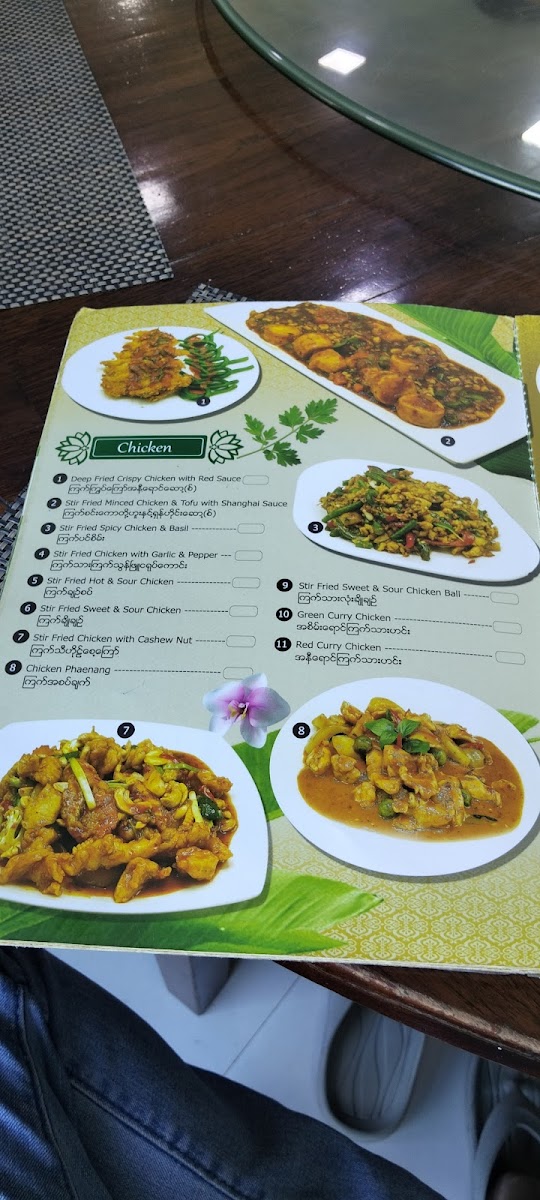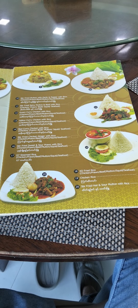 The menu at G7 Gym & Restaurant offers a delightful blend of traditional Burmese flavors, ideal for anyone craving authentic dishes. A standout on the menu is the Plain Rice, a simple yet perfect accompaniment to any meal. The restaurant’s signature dishes, like the လယ်သမားဟင်းချို (Farmer’s Sour Soup), offer a hearty and flavorful experience with a perfect balance of tang and spices. For a more indulgent choice, the ဘဲကင် ငါးခူမွကျော် (Roasted Duck with Fish and Vegetables) is an unforgettable fusion of savory roasted duck paired with fresh fish and vibrant vegetables. The ကန်စွန်းရွက်ကျော်သုပ် (Crispy Watercress Salad) provides a refreshing contrast to the richer flavors, with its crisp, aromatic greens that cleanse the palate. Each dish highlights the essence of local ingredients, making G7 Gym & Restaurant a standout choice for both casual diners and those looking to enjoy a wholesome, satisfying meal in Pathein.