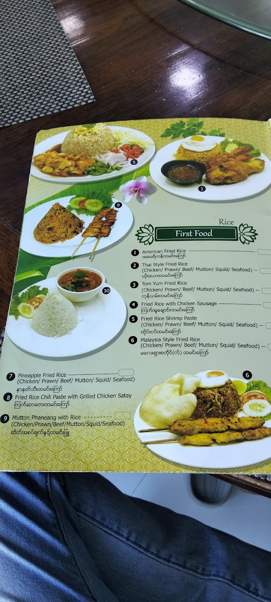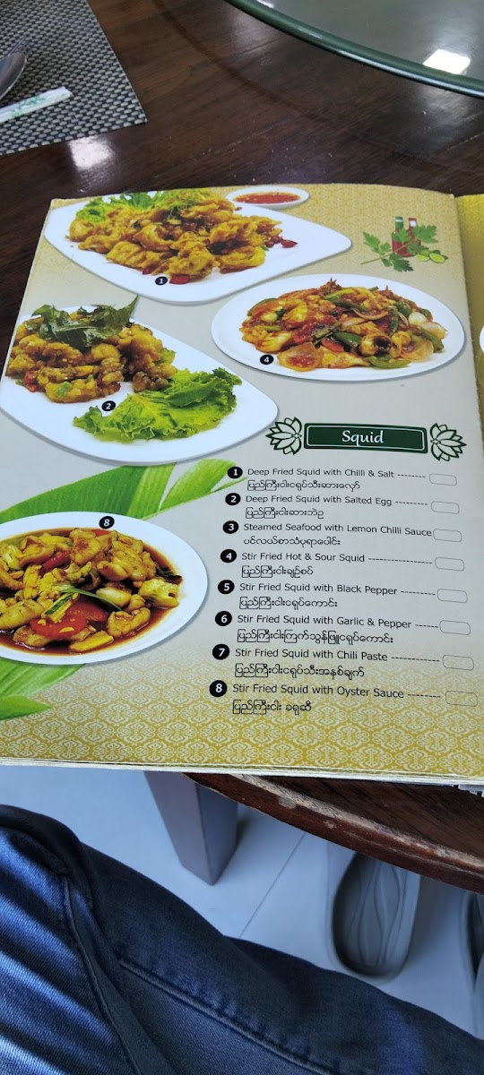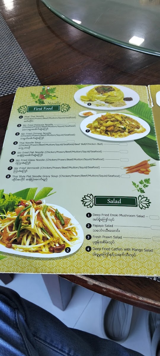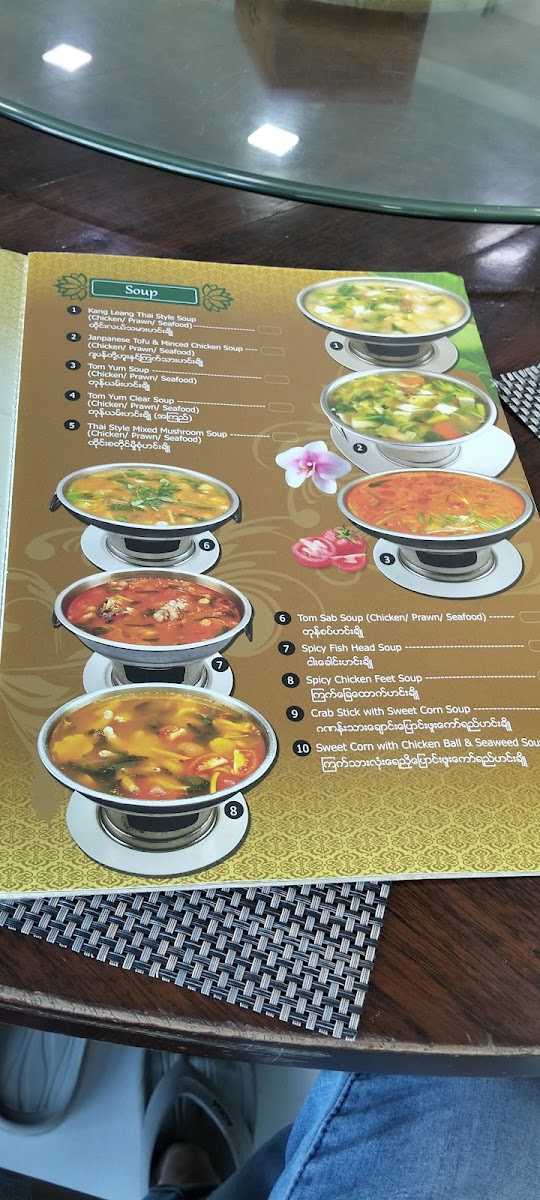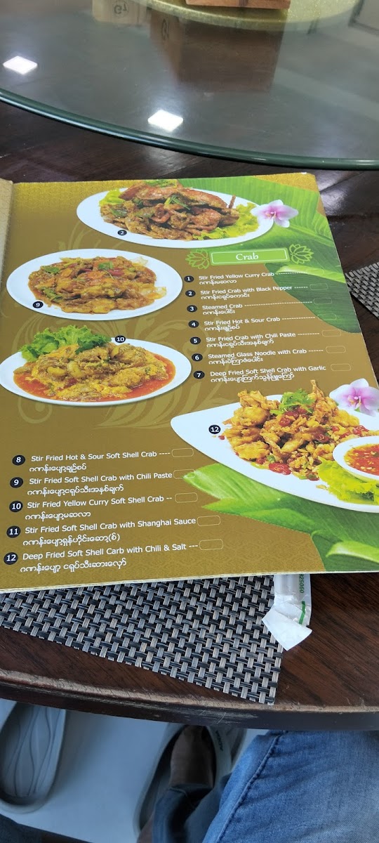 The menu at G7 Gym & Restaurant offers a delightful blend of traditional Burmese flavors, ideal for anyone craving authentic dishes. A standout on the menu is the Plain Rice, a simple yet perfect accompaniment to any meal. The restaurant’s signature dishes, like the လယ်သမားဟင်းချို (Farmer’s Sour Soup), offer a hearty and flavorful experience with a perfect balance of tang and spices. For a more indulgent choice, the ဘဲကင် ငါးခူမွကျော် (Roasted Duck with Fish and Vegetables) is an unforgettable fusion of savory roasted duck paired with fresh fish and vibrant vegetables. The ကန်စွန်းရွက်ကျော်သုပ် (Crispy Watercress Salad) provides a refreshing contrast to the richer flavors, with its crisp, aromatic greens that cleanse the palate. Each dish highlights the essence of local ingredients, making G7 Gym & Restaurant a standout choice for both casual diners and those looking to enjoy a wholesome, satisfying meal in Pathein.